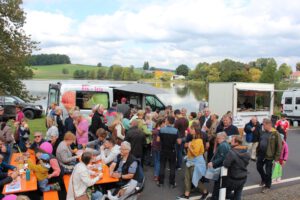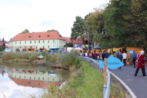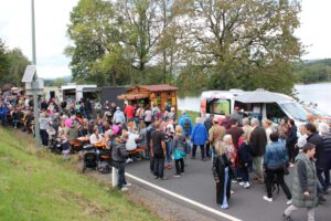 Schon am Sonntagvormittag beim Mittagessen herrschte dichtes Gedränge im schönsten Fischerdorf Altbayerns. Das meiste spielte sich beim Feuerwehrhaus und auf dem Markt der regionalen Genüsse ab. Vor allem die Sitzplätze in der Sonne waren heiß begehrt. Neben dem heimischen Fisch, auf verschiedenste Art und Weise zubereitet, waren auch Kuchen, Küchle und Torten der Renner auf dem Markt. „Wir bedanken uns für die zahlreichen Kuchenspenden, die bei uns eingegangen sind“, so der Kassier der Feuerwehr Voitenthan Wolfgang Stock. Die Mitglieder der Feuerwehr und die Helfer aus den umliegenden Gemeinden hatten alle Hände voll zu tun. Ihre Hauptaufgabe war vor allem der Ausschank des Karpfentrunkts von Hösl-Bräu. Viele Gäste des Festes kamen mit dem Rad: Das Radwegenetz des Landkreises Tirschenreuth zeigte hier Wirkung.